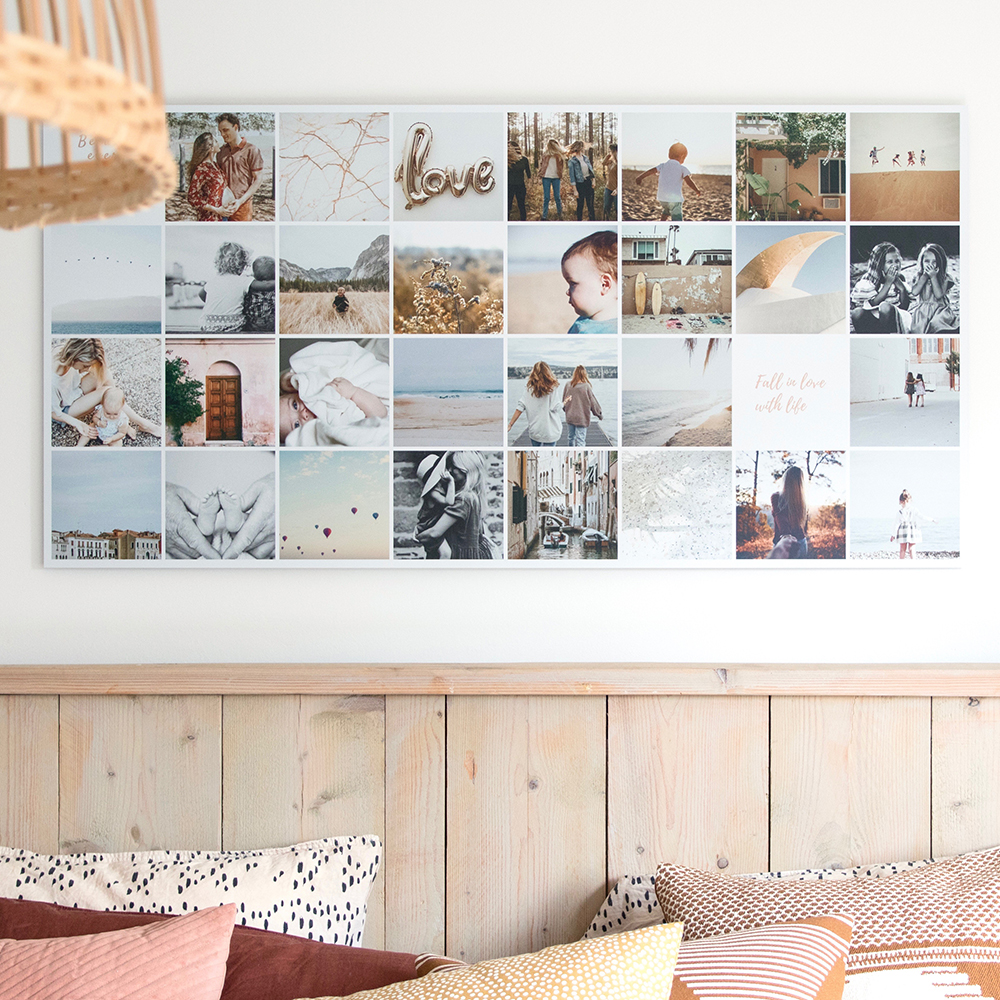 Een panorama aluminium fotocollage is een rechthoekig liggend formaat. Deze medium panorama maat van 120×60 cm heeft plek voor maximaal 32 van je favoriete foto’s. Dit formaat is ideaal om een lege muur op te vullen boven het bed, de bank of de eettafel! Zo start je elke dag met je meest dierbare herinneringen.