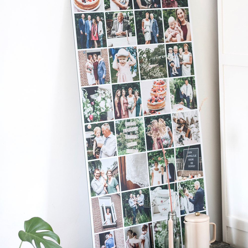 De fotocollage wordt gedrukt op een aluminium wandpaneel met een dikte van 3 millimeter en is geschikt voor binnenshuis als buitenshuis. De aluminium fotocollage is makkelijk op te hangen en je ontvangt er een gratis ophangsysteem bij.