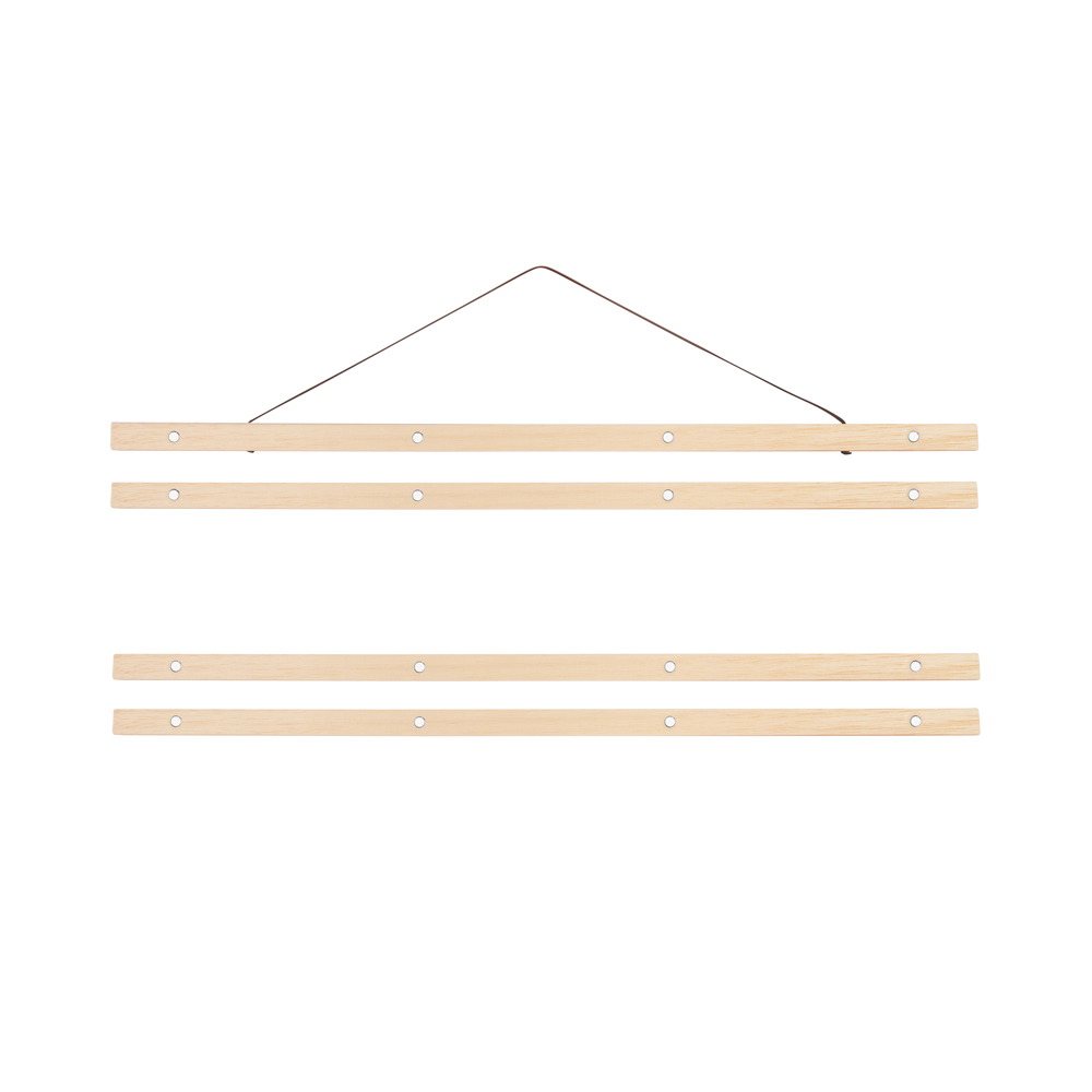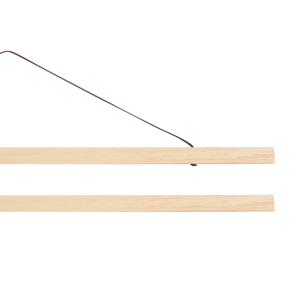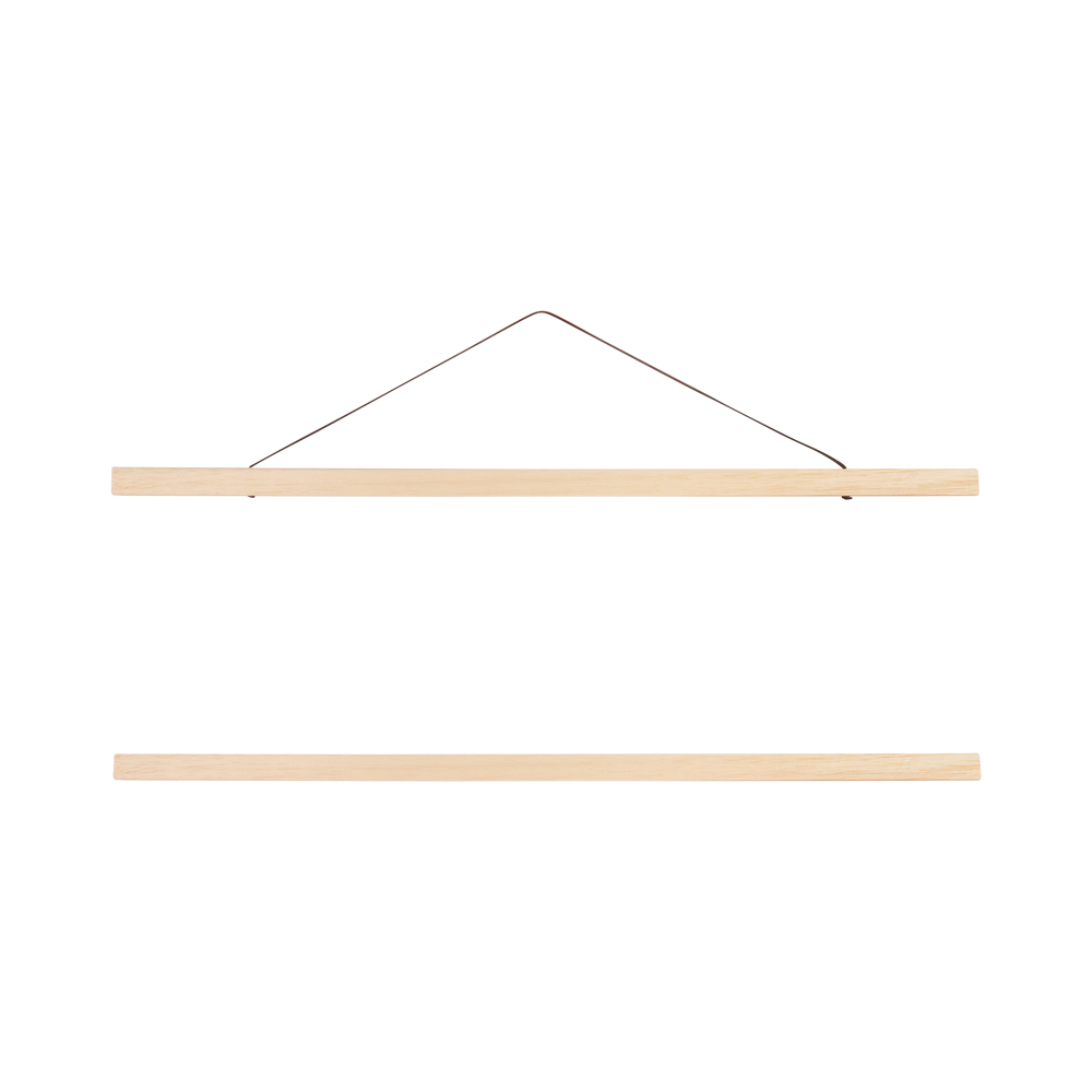 Hang jouw poster op met een stijlvol en handig poster ophangsysteem. Dit houten poster ophangsysteem is gemaakt van hout en past perfect bij onze Mamacollage posters. Jouw poster klemt zich stevig tussen de houten latjes, die worden bijeengehouden en beschermd door 4 sterke magneten. Dit posterophangsysteem kun je daarom steeds opnieuw gebruiken, ook voor andere posters. Het extra verstevigd leren koord is lichtbruin, en past bij elk interieur. Het ophangsysteem wordt geleverd met een set latjes voor aan de bovenkant en voor de onderkant van de poster.