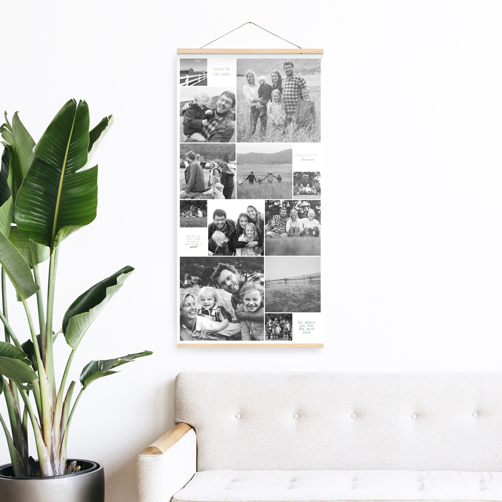 * De hanger is zonder print. Wil je graag het houten ophangsysteem vullen met een leuke poster of collage? Dan kun je ook eens een kijkje nemen bij ons overige aanbod op de website van Mamacollage.
